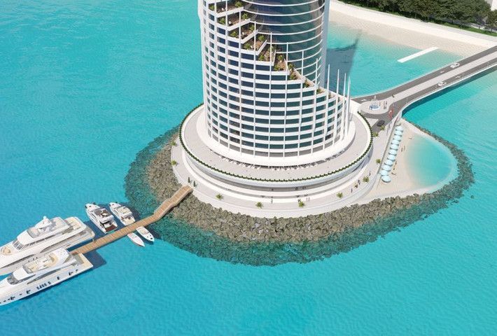 Насыпной остров, площадь которого составит около восьми тысяч квадратных метров, планируется создать на удалении 150 метров от береговой линии курорта.